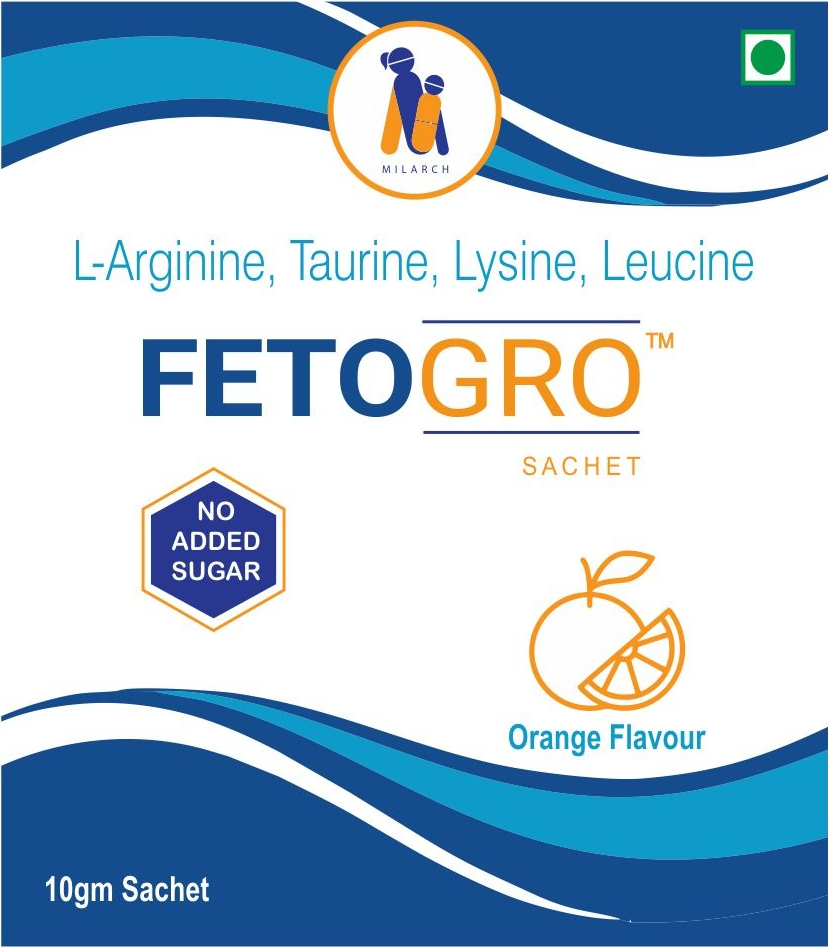 Fetogro™ is a nutritional supplement formulated to support healthy fetal growth in cases of Intrauterine Growth Restriction (IUGR). It combines key amino acids like Taurine, Lysine, Leucine, and L-Arginine to address both placental insufficiency and reduced amino acid uptake, promoting better growth and reducing the risk of low birth weight.